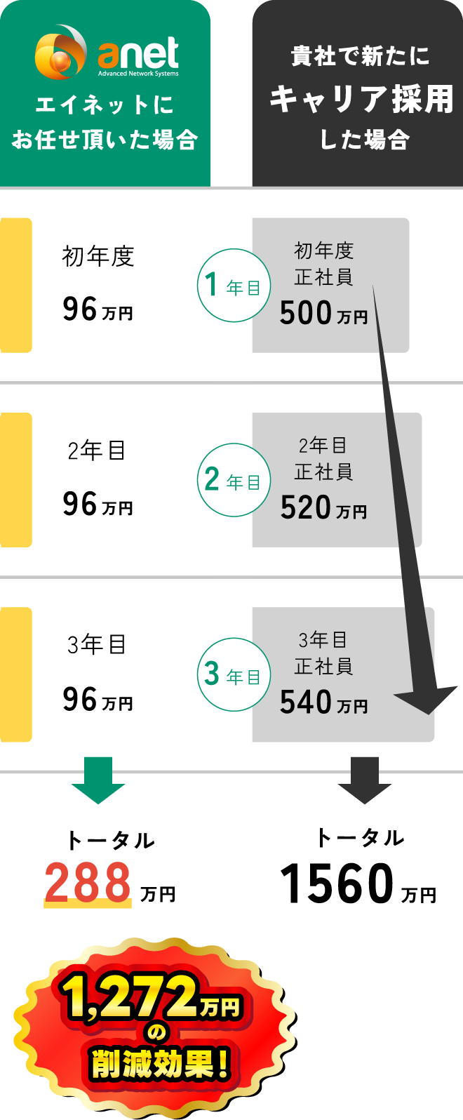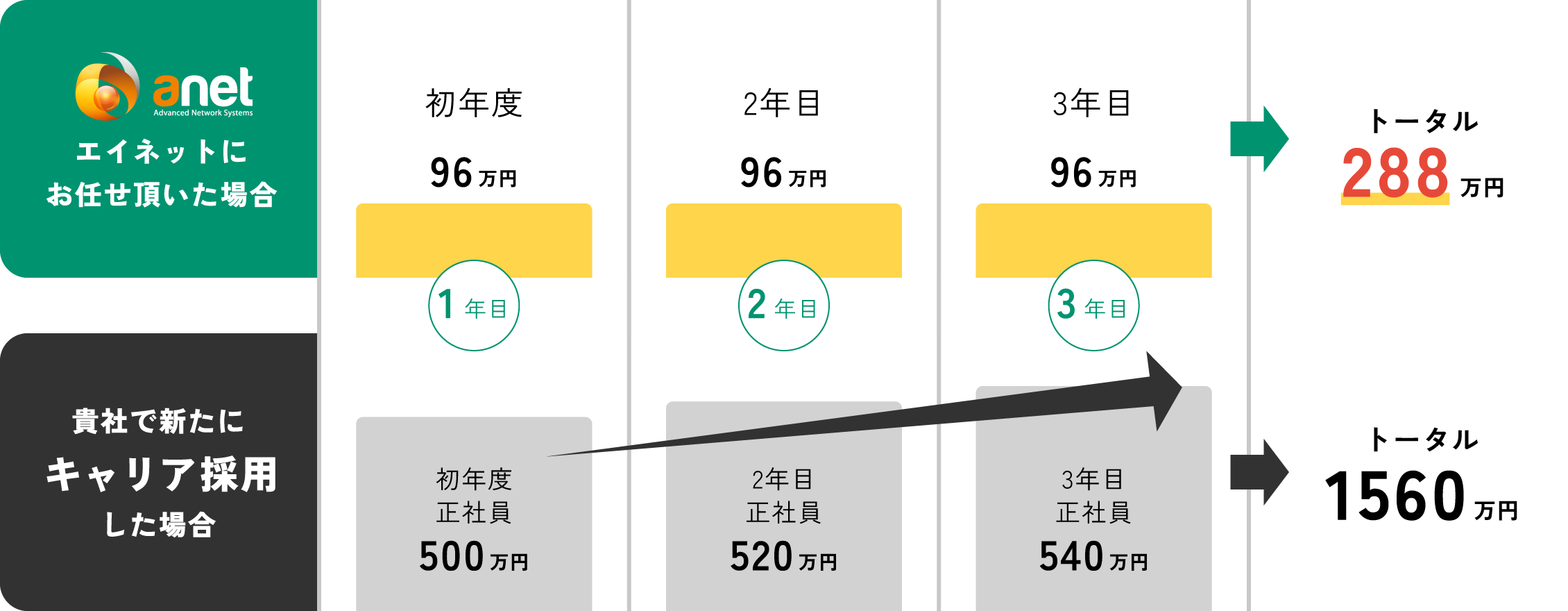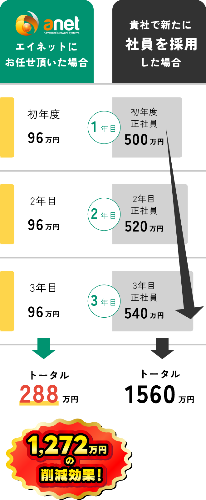 専任の社員を雇うのと比べてコストはどうなりますか?