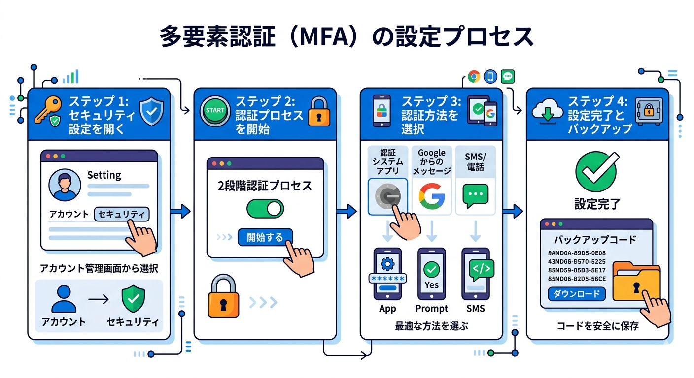 万が一パスワードが漏洩した場合でも、第三者による不正アクセスを防止できる点がメリットです。主要なクラウドサービスやアプリでは多要素認証が推奨されているため、積極的に設定を済ませておくと良いでしょう。