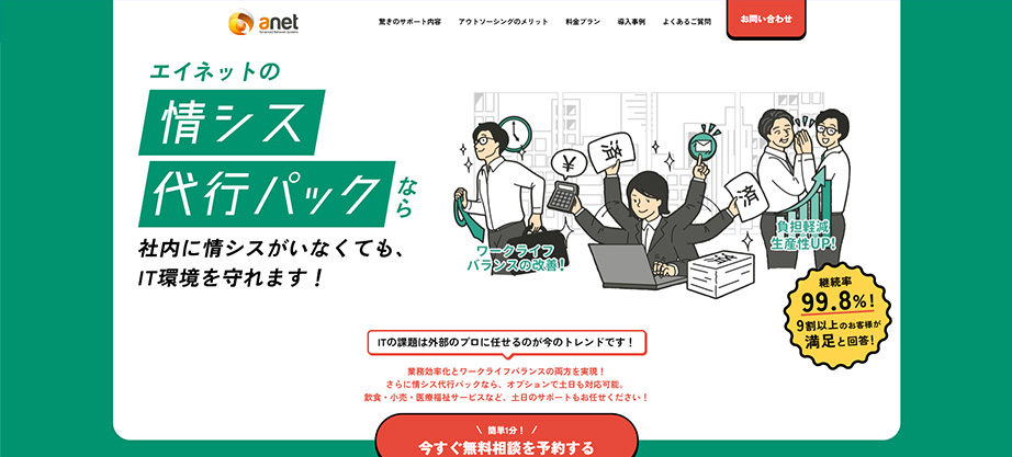 ITセキュリティアウトソーシングにご興味がある方は、まずはお気軽にエイネットの「情シス代行パック」にお問い合わせください。経験豊富な専門スタッフが、貴社の課題解決をサポートいたします。